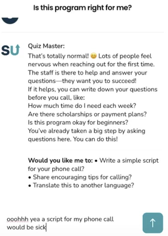 The biggest drop-offs happen when users face friction: forms, paperwork, applications, confusion. Great AI doesn’t just suggest next steps, it executes them. Whether it’s drafting a resume, filling out an application, or connecting to a real service, agentic AI should do the work, not just describe it.